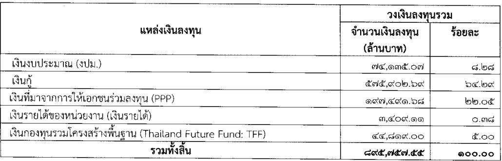 แหล่งเงินลงทุนภายใต้แผนปฏิบัติการด้านคมนาคมขนส่ง ระยะเร่งด่วน พ.ศ.2560