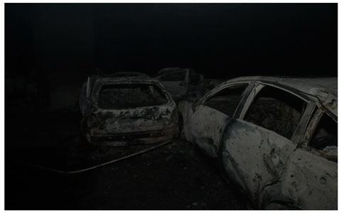 บรรยายภาพ : สภาพรถยนต์ที่ได้รับความเสียหายจากเหตุคาร์บอมบ์ในลานจอดรถชั้นใต้ดินของอาคารโรงแรมและห้างสรรพสินค้าลีการ์เดนส์พลาซ่า เมื่อวันที่ 31 มี.ค.ที่ผ่านมา ซึ่งบันทึกภาพได้หลังวันเกิดเหตุ (ภาพโดย สุเมธ ปานเพชร)