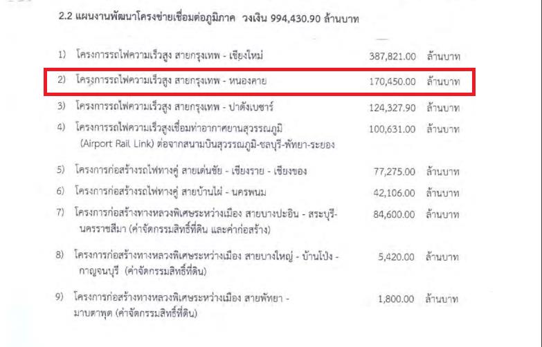 ที่มา : โครงการแนบท้ายร่างพ.ร.บ.ให้อำนาจกระทรวงการคลังกู้เงินเพื่อลงทุนในโครงสร้างพื้นฐานด้านการขนส่งของประเทศ พ.ศ... วงเงินไม่เกิน 2 ล้านล้านบาท และมติคณะรัฐมนตรี วันที่ 19 มี.ค.2556