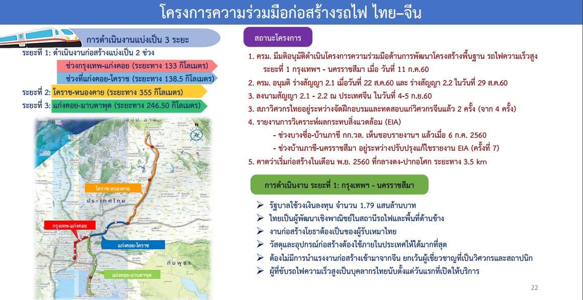 "...กว่าจะถึงวันนี้ โครงการรถไฟความเร็วสูงไทย-จีน เส้นทางกรุงเทพ-นครราชสีมา-หนองคาย ต้องใช้เวลาผลักดันกว่า 8 ปี และผ่านมาการพิจารณาของ 3 รัฐบาล ตั้งแต่สมัยรัฐบาลอภิสิทธิ์ เวชชาชีวะ ผ่านมือรัฐบาลยิ่งลักษณ์ ชินวัตร จนมาได้ข้อยุติและเริ่มก่อสร้างในยุครัฐบาล คสช..."