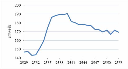 รูปที่ 1: อัตราค่าจ้างขั้นต่ำเฉลี่ยทั่วประเทศ – (ค่าเงินบาทปี 2552)