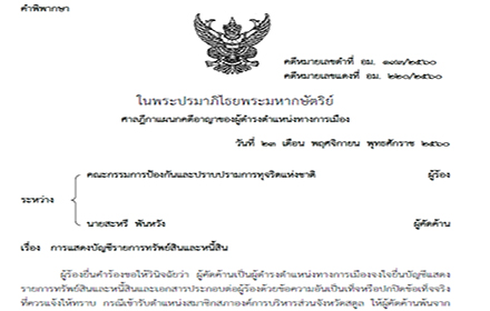 ส่งท้ายปี 60! ศาลฎีกาฯฟัน ส.อบจ.สตูล ซุกเงินฝาก ที่ดิน - จงใจไม่ยื่นบัญชีฯ 5 ราย นักการเมือง จ.พิจิตร นครนายก นนทบุรี พ้นตำแหน่งทันที ปรับคนละ 4,000-12,000 บาท จำคุก 1-3 เดือน รอลงโทษรวด