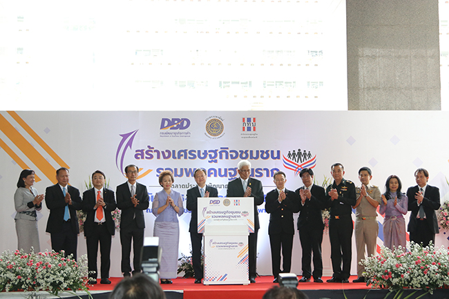 ส่วน นางกุลณี อิศดิศัย อธิบดีกรมพัฒนาธุรกิจการค้า ได้สนับสนุนแนวทางของ กทบ. โดยการจัดจำลองร้านค้าประชารัฐไฮบริดที่เป็นต้นแบบมาจัดแสดงภายในบริเวณงานด้วย รวมถึงระบุว่าหนึ่งในพันธกิจหลักของ พค. นั่นก็คือ การพัฒนาธุรกิจไทยให้เข้มแข็งแข่งขันได้ ซึ่งเชื่อว่าการจัดงาน “สร้างเศรษฐกิจชุมชน รวมพลคนฐานราก” ร่วมกับกองทุนหมู่บ้านและชุมชนเมือง ในครั้งนี้ เชื่อว่าจะสามารถสร้างแรงบันดาลใจ สร้างไอเดียใหม่ๆ รวมทั้งโอกาสด้านการพัฒนาและยกระดับตนเองเพื่อการแข่งขันในยุคเศรษฐกิจ 4.0 ได้ต่อไป