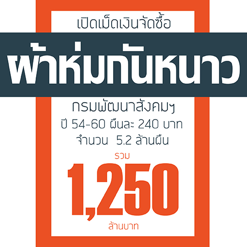 เม็ดเงินจัดซื้อผ้าห่ม กรมพัฒนาสังคมฯ 6 ปี 5.2 ล้านผืน ๆละ 240 บาท รวม 1,250 ล้านบาท