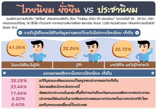 ผลโพลชี้คนไทย 41.01% ไม่รู้จักประชานิยมยั่งยืน มองไม่ต่างประชานิยม