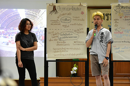 น้องหมิว กล่าวต่อไปว่า จากการได้มาร่วมกิจกรรมและได้ลงพื้นที่คนรุ่นใหม่ก้าวพลาดที่ศูนย์ฝึกและอบรมเด็กและเยาวชน (ชาย) บ้านกาญจนาภิเษก ได้คุยกับป้ามล ทิชา ณ นคร ในเรื่องการฟื้นฟูศักยภาพเด็ก กิจกรรมที่ทำร่วมกับครอบครัว ที่จะทำให้เด็กมีความสัมพันธ์กับครอบครัว ผู้ปกครอง เพราะที่ผ่านมาเด็กมักมีความสัมพันธ์ไม่ดีนักกับครอบครัว ซึ่งตรงและได้ประโยชน์กับการทำงานของตนเองมาก สามารถนำไปใช้ได้ในพื้นที่ 7 จังหวัดที่ต้องดูแล ซึ่งมีเด็กในศูนย์ฝึกประมาณ 400 กว่าคน ปัญหาส่วนใหญ่ที่เด็กรับโทษคือเรื่องยาเสพติด โดยปัญหารากลึกจริงๆ เกิดจากครอบครัว พ่อแม่ลืมถอดบทบาทหน้าที่จากสังคมเมื่อเข้ามาอยู่ในบ้านใช้การออกคำสั่งกับลูก เกิดความกดดันมากเกินไป บางคนตามใจลูกแต่ไม่ได้เข้าใจเด็กว่าต้องการอะไร ทั้งนี้ เกิดความคิดในการแก้ไขที่ว่าอาชญากรเด็กไม่ใช่ปัญหาระดับบุคคลแต่เกิดจากปัญหาเชิงระบบ ซึ่งยอมรับว่าเชิงระบบนั้นแก้ยาก เราต้องเปลี่ยนทัศนคติก่อน สร้าง Mindset ใหม่ การทำงานกับผู้ปกครองต้องทำให้เข้าใจว่าสิ่งที่ผู้ปกครองคิดกับเด็กคิดมันไม่ตรงกัน ต้องรับฟังเสียงเด็กให้มาก จึงจะสามารถแก้ปัญหาได้จริง