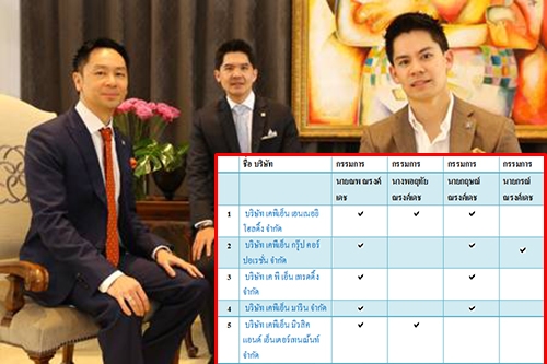 พลิกข้อมูลทางธุรกิจพบว่า ‘กฤษณ์-ณพ-กรณ์’ เป็นกรรมการ ประมาณ 50 บริษัท มีสินทรัพย์รวมนับหมื่นล้านบาท ‘กฤษณ์’ เป็นกรรมการ 21 บริษัท, ‘ณพ’ 35 บริษัท , ‘กรณ์’ 13 บริษัท ส่วน ‘พอฤทัย’ 12 บริษัท