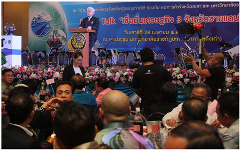 งาน "ดินเนอร์ ทอล์ค" ครั้งประวัติศาสตร์ที่สามจังหวัดชายแดนภาคใต้ เพื่อเรียกความเชื่อมั่นและพูดคุยถึงอนาคตเศรษฐกิจ ณ ดินแดนปลายด้ามขวาน เมื่อค่ำวันที่ 28 เม.ย.ที่ผ่านมา ที่หอประชุมมหาวิทยาลัยราชภัฏยะลา ซึ่งมีศูนย์อำนวยการบริหารจังหวัดชายแดนภาคใต้ (ศอ.บต.) เป็นแม่งาน และมีรองนายกฯฝ่ายเศรษฐกิจอย่าง นายกิตติรัตน์ ณ ระนอง ให้ความสำคัญเดินทางไปปาฐกถาด้วยตนเองนั้น นับว่าสร้างกระแสตอบรับและความหวังให้กับคนพื้นที่ได้ไม่น้อยทีเดียว