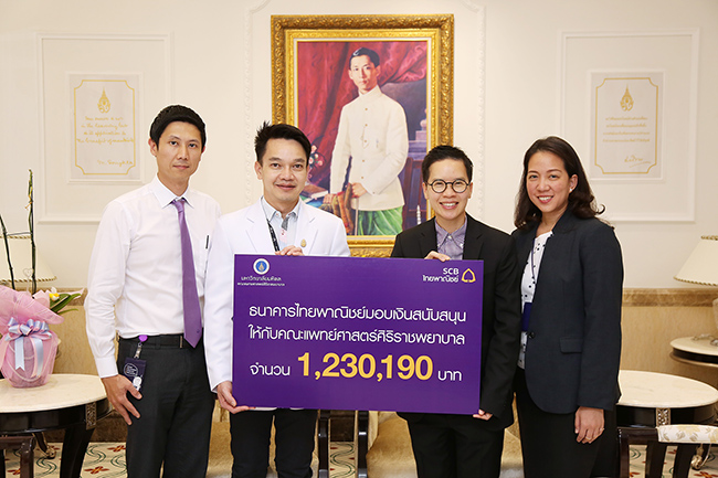 ธนาคารไทยพาณิชย์ มอบเงินที่ได้จากกิจกรรมส่งเสริมการตลาดผลิตภัณฑ์บัตรเครดิตไทยพาณิชย์แก่คณะแพทย์ศาสตร์ศิริราชพยาบาล จำนวน 1,230,190 บาท เพื่อนำไปใช้ประโยชน์ในโครงการของคณะแพทย์ศาสตร์ศิริราชพยาบาล โดยมี นางสาว กัญฒ์ภิอร สุวรรณ ผู้อำนวยการอาวุโสส่งเสริมการตลาด ธนาคารไทยพาณิชย์ เป็นผู้แทนมอบให้กับ รศ.นพ.นริศ กิจณรงค์ รองคณบดีฝ่ายสื่อสารองค์กรและกิจกรรมเพื่อสังคม คณะแพทยศาสตร์ศิริราชพยาบาล มหาวิทยาลัยมหิดล เป็นตัวแทนรับมอบ เมื่อเร็วๆนี้ ณ โรงพยาบาลศิริราช