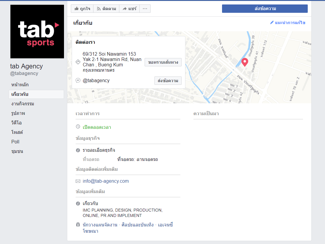 เมื่อกดเข้าไปรายละเอียดใน Facebook พบรูปภาพการจัดกิจกรรมต่างๆ ของ บริษัท ทีเอบีฯ เกี่ยวข้องกับงานกีฬาจำนวนมาก อาทิ การวิ่งมาราธอน การแข่งรถ การแข่งจักรยาน ว่ายน้ำ รวมไปถึงกิจกรรม Air Race 1 World Cup ที่บริษัท ทีเอบีฯเป็นผู้ประสานงานกิจกรรมด้วย