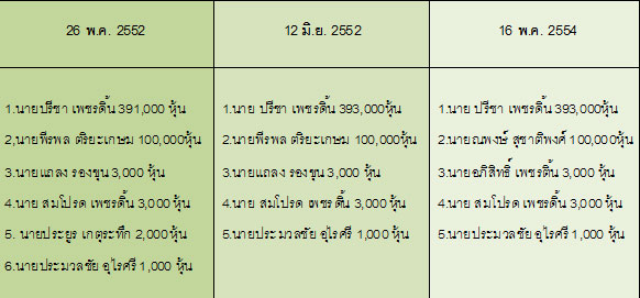 1. นางอนุรัตน์ เทียมทัน เนื้อที่ 1,507 ตารางวา วงเงิน 88,913,000 บาท เมื่อวันที่ 22 ม.ค. 2553 โดย สำนักงานเลขาธิการวุฒิสภา