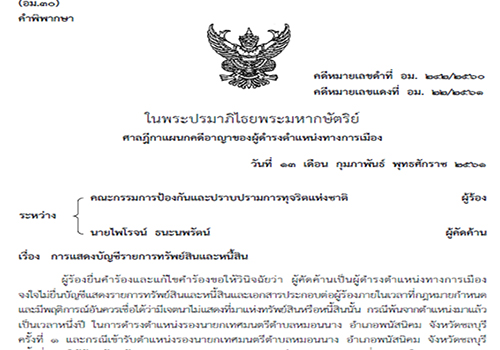ให้รองนายก ท.ในจ.ชลบุรีพ้นตำแหน่งทันที! ศาลฎีกาฯฟัน 6 นักการเมืองซุกบัญชีฯ