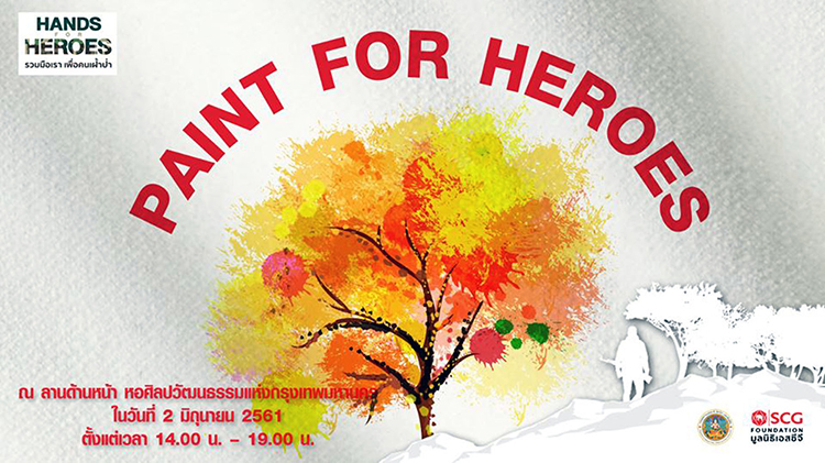มูลนิธิเอสซีจี ผสานพลังความร่วมมือ กรมอุทยานแห่งชาติ สัตว์ป่า และพันธุ์พืช พร้อมด้วยหน่วยงานภาคเอกชน และภาคประชาสังคม จัดโครงการ 'HANDS FOR HEROES' รวมมือเรา เพื่อคนเฝ้าป่า ส่งเสริมให้ทุกภาคส่วนในสังคมตระหนักถึงความสำคัญของผู้พิทักษ์ป่า และร่วมเป็นพลังเพื่อสนับสนุนการทำงานของผู้พิทักษ์ป่า ผ่านกิจกรรมต่างๆ โดยนำร่องจัดกิจกรรมแรก 'PAINT FOR HEROES' ขึ้นในงานแถลงข่าวเปิดตัวโครงการฯ ในวันเสาร์ที่ 2 มิ.ย. 2561 พร้อมเชิญชวนให้ทุกคนมาร่วมเป็นส่วนหนึ่งในการสร้างแรงใจเพื่อผู้พิทักษ์ป่ากับกิจกรรมเพ้นต์เสื้อเพื่อคนเฝ้าป่า การประมูลเสื้อจากฝีมือของศิลปิน ดารา และบุคคลที่มีชื่อเสียงจากหลากหลายวงการ อาทิ เป้ สีน้ำ ครูสังคม ทองมี รศ.ทินกร กาษรสุวรรณ ลำพู กันเสนาะ เหมี่ยว-ปวันรัตน์ นาคสุริยะ โน้ต-วัชรบูล ลี้สุวรรณ อ.ศศิน เฉลิมลาภ และหมอล็อต-น.สพ.ภัทรพล มณีอ่อน ฯลฯ เพื่อสมทบทุนจัดซื้อชุดอุปกรณ์ลาดตระเวนให้กับเจ้าหน้าที่พิทักษ์ป่า