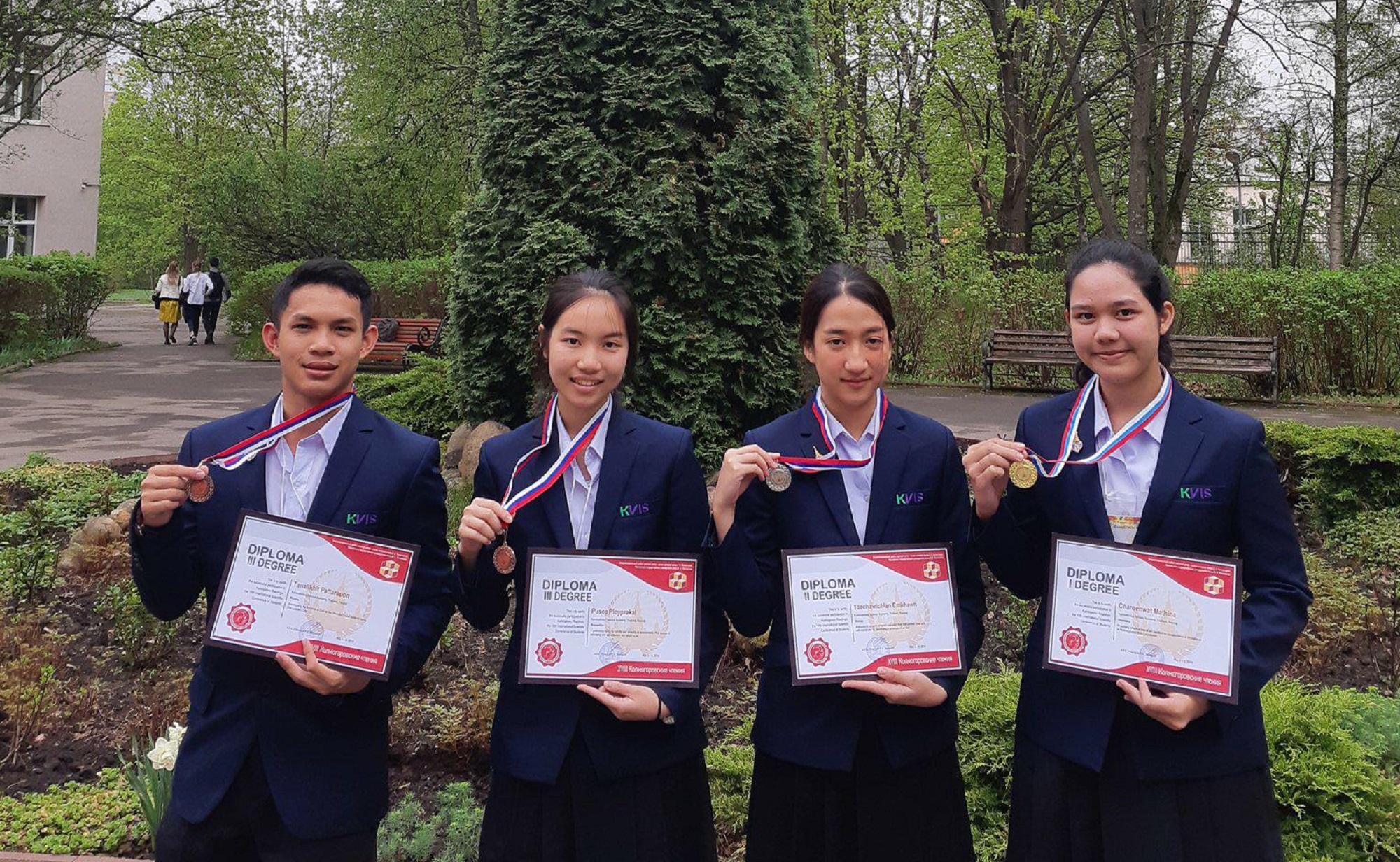 นางสาวมทินา เจริญวัฒน์ ได้เหรียญทองจากสาขาเคมี, นางสาวเอมขวัญ เตชะวิเชียร ได้เหรียญเงินจากสาขาชีววิทยา, นางสาวพลอยประกาย ภูศรี ได้เหรียญทองแดงจากสาขามนุษยศาสตร์ และนายภัทรพล ธนลิขิต เหรียญทองแดงจากสาขาฟิสิกส์ โดยมี นายณัฐวินทร์ โช ครูฟิสิกส์และดาราศาสตร์นำทีมไปร่วมงาน ทั้งนี้ ผลงานวิจัยของนักเรียนยังได้รับความสนใจเผยแพร่ในวารสารวิทยาศาสตร์ระดับมัธยมศึกษาตอนปลายที่มีชื่อเสียงของรัสเซีย นับเป็นความสำเร็จอีกระดับของโรงเรียนฯ ที่เน้นการเรียนการสอนด้านคณิตศาสตร์และวิทยาศาสตร์ บ่มเพาะให้นักเรียนเป็นทั้งคนดีและคนเก่งที่มีศักยภาพสูง มุ่งสู่การเป็นนักวิจัย นักประดิษฐ์ และนวัตกรชั้นนำที่สรรค์สร้างประโยชน์ให้ประเทศต่อไป