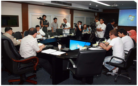 บรรยายภาพ : บรรยากาศการแถลงความคืบหน้าการตั้งอนุกรรมการเยียวยา และการวางหลักเกณฑ์ช่วยเหลือเยียวยาผู้ได้รับผลกระทบจากความไม่สงบในจังหวัดชายแดนภาคใต้ เมื่อวันศุกร์ที่ 11 พ.ค.ที่ผ่านมา ที่ ศอ.บต. (ภาพโดย อะหมัด รามันห์สิริวงศ์)