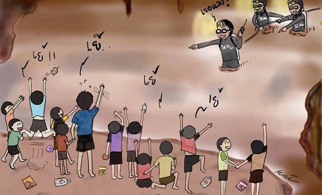 พวกทีมหมูป่าไม่ได้ไปเที่ยวห้าง ดูหนัง ไม่ได้ไปเที่ยวทะเล เหมือนคนอื่นๆ แต่เขาไปเที่ยวถ้ำ แล้วเกิดฝนตกหนักจนน้ำท่วมในถ้ำ ทำให้พวกเขาไม่สามารถออกมาได้พวกเขาเลยกลายเป็น ”ผู้ประสบภัยทางธรรมชาติ” ที่ต้องการการช่วยเหลือมากกว่าจะถูกทำโทษในฐานะเด็กซน หรือถูกยกย่องในฐานะฮีโร่