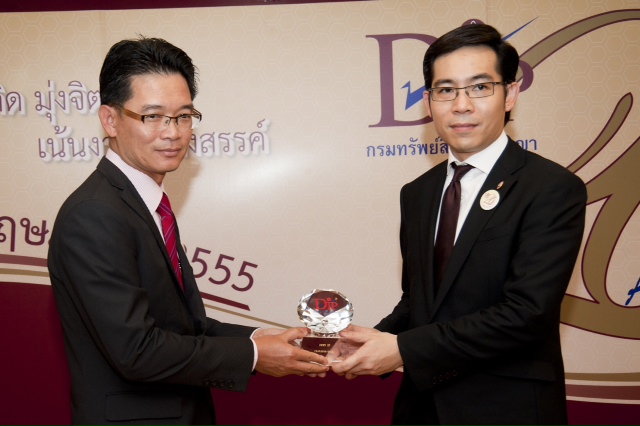 กิตติ ตั้งจิตรมณีศักดา (ซ้าย) กรรมการผู้จัดการ บริษัทกฎหมายเอสซีจี จำกัด เป็นตัวแทนเอสซีจี รับรางวัลเพชร IP จากกรมทรัพย์สินทางปัญญา ซึ่งเป็นรางวัลพิเศษที่มอบให้กับผู้ประกอบการที่ประสบความสำเร็จในการใช้ทรัพย์สินทางปัญญาตั้งแต่กรมทรัพย์สินทางปัญญาก่อตั้งขึ้น และสามารถสร้างมูลค่าเพิ่มจากทรัพย์สินทางปัญญา พร้อมดำเนินธุรกิจโดยคำนึงถึงสังคมและสิ่งแวดล้อมได้อย่างโดดเด่น ชัดเจน และเป็นรูปธรรม โดยมีศิริวัฒน์ ขจรประศาสน์ (ขวา) รัฐมนตรีช่วยว่าการกระทรวงพาณิชย์ เป็นผู้มอบ