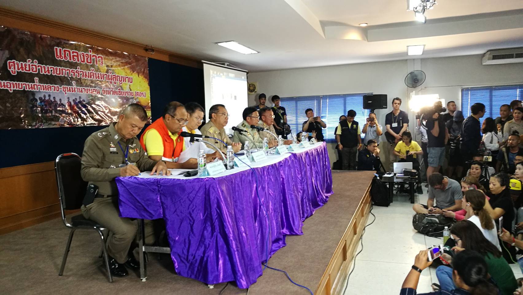 วันที่ 11 กรกฎาคม พลเรือตรี อาภากร อยู่คงแก้ว ผู้บัญชาการหน่วยบัญชาการสงครามพิเศษทางเรือ (ผบ.นสร.) ตอบคำถามสื่อมวลชนระหว่างแถลงข่าวปิดศูนย์อำนวยการร่วมค้นหาผู้สูญหายในวนอุทยานถ้ำหลวง ณ ห้องประชุมองค์การบริหารส่วนตำบลโป่งผา อำเภอแม่สาย จังหวัดเชียงราย ถึงวิธีการช่วยเหลือทีมนักฟุตบอลเยาวชน หมูป่าอคาเดมี่พร้อมโค้ชออกจากถ้ำหลวงขุนน้ำนางนอน