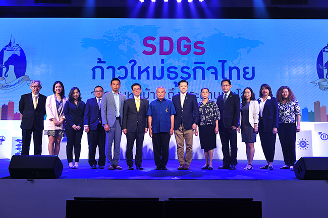 ม.ร.ว.ดิศนัดดา ดิศกุล ประธานกรรมการสถาบันส่งเสริมและพัฒนากิจกรรมปิดทองพลังพระ สืบสานแนวพระราชดำริ กล่าวปาฐกถาในการสัมมนา "SDGs ก้าวใหม่ธุรกิจไทย" ว่าการทรงงานของพระบาทสมเด็จพระเจ้าอยู่หัวรัชกาลที่เก้า ตลอด 70 ปีนั้นมีตั้งแต่เรื่องสุขภาพ ความยากจน ความมั่นคงทางอาหาร ความเหลื่อมล้ำทางสังคม การศึกษา น้ำ พลังงานทดแทน ทรัพยากรธรรมชาติและสิ่งแวดล้อม ดังนั้น แนวพระราชดำริของพระองค์จึงเกิดก่อนเป้าหมายการพัฒนาที่ยั่งยืนของสหประชาชาติ (SDG) นอกจากนี้งานที่ทรงทำยังครอบคลุมในทุกเรื่องของ SDG