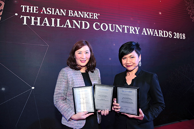 ไทยพาณิชย์ได้รับ 3 รางวัลยอดเยี่ยมธนาคารผู้นำด้านนวัตกรรมทางการเงินในยุคดิจิทัล ที่ลูกค้าชื่นชมที่สุด จากนิตยสาร The Asian Banker นิตยสารชั้นนำด้านการเงินการธนาคารในภูมิภาคเอเชีย ในงาน The Asian Banker Thailand Country Awards 2018 ได้แก่ รางวัล The Best Branch Digitisation Initiative, The Best API Initiative และ The Best Frictionless Social Media Initiative จากผลงานการสร้างวิดีโอคอนเทนต์ยอดเยี่ยม “คุณนายออมเดอะซีรีส์” โดยมี นางภิมลภา สันติโชค รองผู้จัดการใหญ่อาวุโส ผู้บริหารสูงสุด Commercial Banking Solutions (ซ้าย) และ นางจันทร์เพ็ญ จันทนา ผู้อำนวยการผู้บริหารสาย Social Media & Digital Content Division (ขวา)เป็นผู้แทนธนาคารไทยพาณิชย์เข้ารับรางวัล ณ โรงแรมอวานี ริเวอร์ไซด์ กรุงเทพฯ