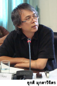 ยุกติ มองว่า พ.ต.ท.ทักษิณ พยายามหาแนวร่วมในเรื่องการปรองดอง แต่เขากลับยิ่งเจอเสียงต่อต้านมากขึ้น โดยเฉพาะนักวิชาการ ซึ่งส่วนตัวเห็นด้วยกับแนวคิดของ สมศักดิ์ เจียมธีรสกุล อาจารย์ศิลปศาสตร์ มหาวิทยาลัยธรรมศาสตร์ที่ว่า ถ้าประเด็นเรื่องแก้มาตรา 112 อยู่นอกสายตาของพ.ต.ท.ทักษิณ แล้วทำไมถึงมีแกนนำนปช. และ สส.พรรคเพื่อไทย วางพวงหรีดงานศพอากง จำนวนมาก ทั้งที่เรื่อง อากง พรรคเพื่อไทยพยายามบอกว่าไม่เกี่ยว กรณีนี้จึงประเมินได้ว่า ประเด็น 112 แรงจริง