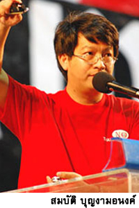 สมบัติ ระบุว่า ในการขับเคลื่อนมวลชนของกลุ่มเขา ไม่ได้มาส่งพ.ต.ท.ทักษิณ แต่พ.ต.ท.ทักษิณกระโดดขึ้นขบวนมา แม้ว่า พ.ต.ท.ทักษิณ จะเป็นคนสำคัญที่ขึ้นมา แต่ที่ผ่านมาเราก็พูดชัดเจนว่า เราสู้เพื่อประชาธิปไตย เราไม่ได้สู้เพื่อทักษิณ จึงสามารถวิจารณ์สิ่งที่พ.ต.ท.ทักษิณพูดได้เต็มที่