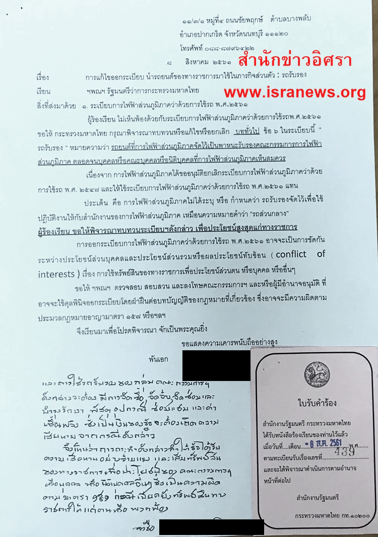 สืบเนื่องจาก สำนักข่าวอิศรา www.isranews.org นำเสนอข่าวว่า เมื่อวันที่ 23 ก.ค. 2561 นายอิทธิพล ช่างกลึงดี ผู้อำนวยการศูนย์บริการประชาชน ปฏิบัติราชการแทนปลัดสำนักนายกรัฐมนตรี ได้ส่งหนังสือถึงปลัดกระทรวงมหาดไทย รับทราบเป็นข้อมูลประกอบการพิจารณาดำเนินการ กรณี พ.อ. รายหนึ่ง ทำหนังสือร้องเรียนถึงนายกรัฐมนตรี ขอพิจารณาตรวจสอบกรณี กรรมการบริหารการไฟฟ้าส่วนภูมิภาค (บอร์ด กฟภ.) รายหนึ่ง นำรถยนต์ของทางราชการมาใช้ในภารกิจส่วนตัว โดยผู้ร้องแจ้งว่า การกระทำดังกล่าวขัดระเบียบสำนักนายกรัฐมนตรีว่าด้วยรถราชการ พ.ศ.2523 และไม่สุจริต (อ่านประกอบ : สำนักปลัดฯ แจ้งบิ๊ก มท.ทราบ! พ.อ.ร้องนายกฯ บอร์ด กฟภ.นำรถหลวงใช้ส่วนตัว)