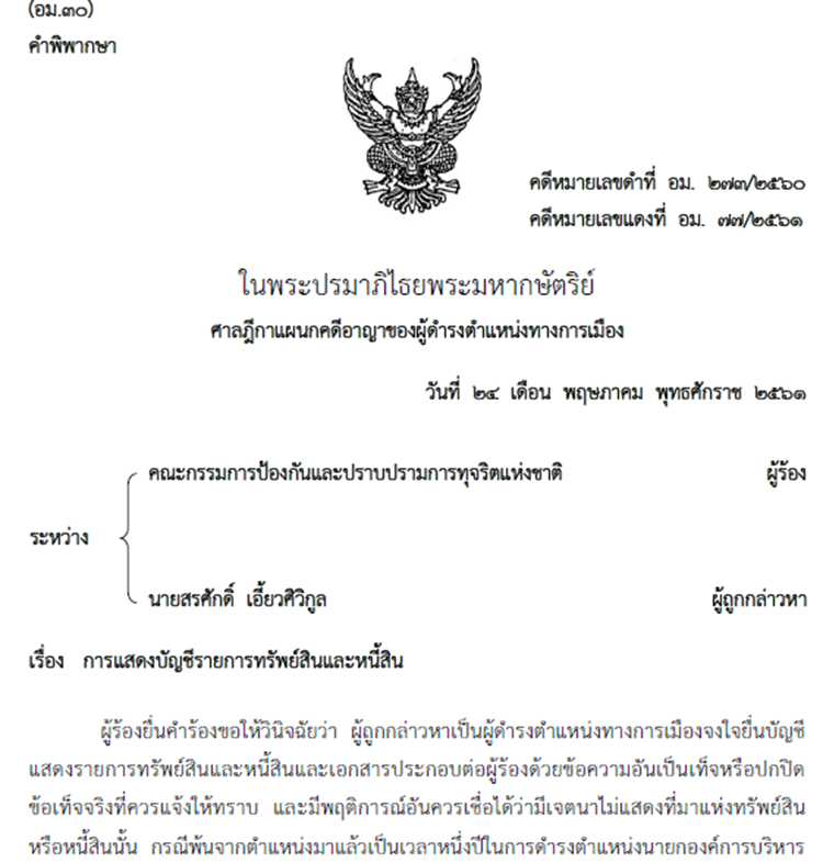 เป็นรายล่าสุดที่จงใจยื่นบัญชีแสดงรายการทรัพย์สินและหนี้สินเท็จ!