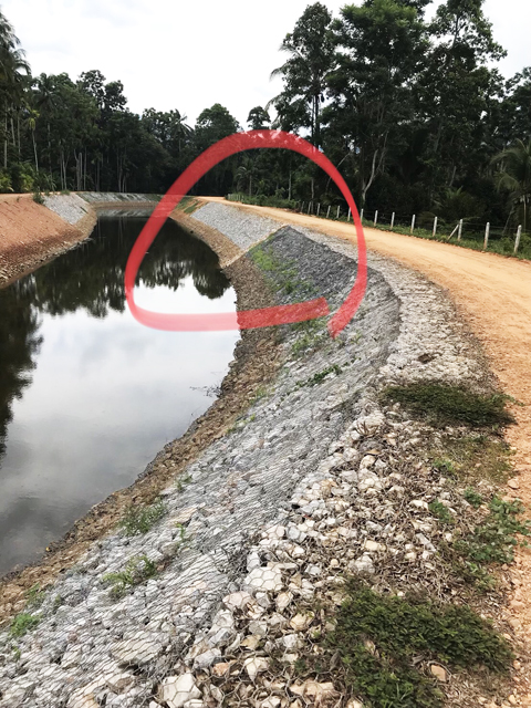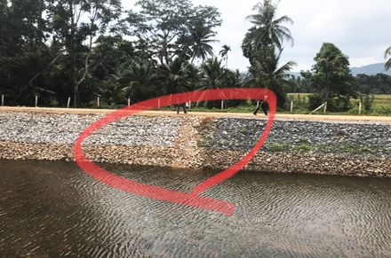 1 และ 2 โครงการก่อสร้างพนังกั้นน้ำบ้างต้นชด ต.ลำพะยา อ.เมืองยะลา เจ้าหน้าที่ ป.ป.ท.สงสัยว่ามีการแก้ไขเพิ่มเติมงาน เพราะหินที่ใช้ถมคนละสีกันอย่างชัดเจน