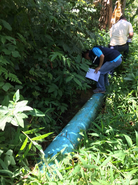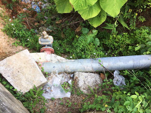2.แนวท่อส่งน้ำ ตามแบบกำหนดให้เป็นท่อเหล็กอาบสังกะสี แต่ของจริงเป็นท่อเหล็กแค่บางส่วน ที่เหลือใช้ท่อพีวีซีสีฟ้า