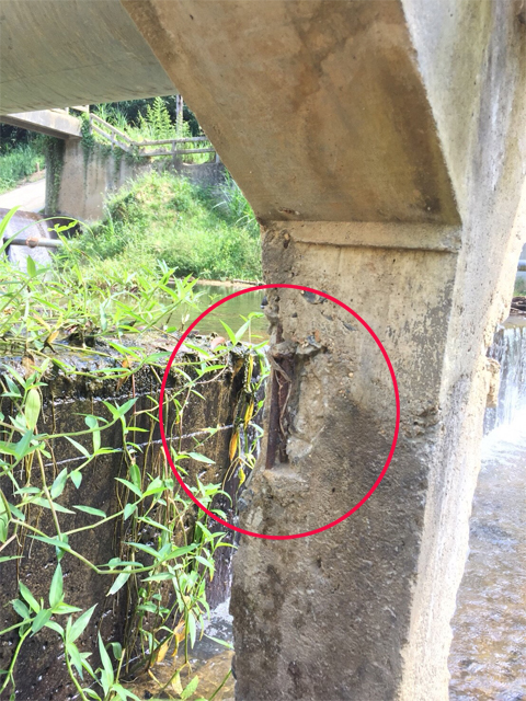 1.ต่อม่อคอนกรีตที่ใช้เป็นฐานรองรับท่อเหล็ก แตกร้าว ทั้งๆ ที่สร้างมายังไม่ถึง 1 ปี