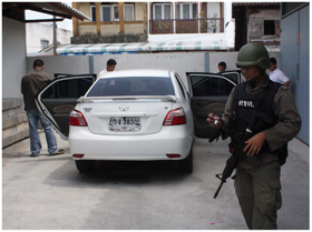 2 รถยนต์เก๋งยี่ห้อโตโยต้า รุ่นวีออส สีขาวของ น.ส.มยุรี ไชยอูมา ซึ่งถูกคนร้ายจ่อยิงปางตายหลังจอดรถในย่านตลาดเก่า อ.เมืองยะลา