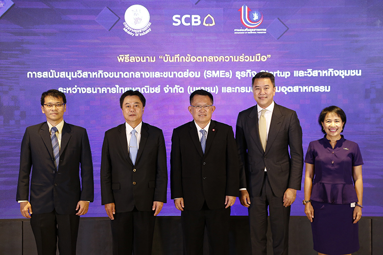 กระทรวงอุตสาหกรรม โดยกรมส่งเสริมอุตสาหกรรม (กสอ.) ร่วมกับ ธนาคารไทยพาณิชย์ ประกาศความร่วมมือสนับสนุนและพัฒนาผู้ประกอบการเอสเอ็มอีไทยเปลี่ยนผ่านสู่ยุค 4.0 พร้อมเดินหน้าผลักดันการใช้ดิจิทัลแพลตฟอร์มและเทคโนโลยีต่อยอดศักยภาพวิสาหกิจชุมชน เอสเอ็มอี และสตาร์ทอัพ อย่างรอบด้าน ชูพันธกิจร่วมเสริมขีดความสามารถในการแข่งขันให้เอสเอ็มอีเพื่อสร้างรากฐานเศรษฐกิจดิจิทัลที่แข็งแกร่งและเติบโตอย่างยั่งยืน อาทิ ส่งเสริมการเข้าถึงองค์ความรู้ สร้างโอกาสทางการตลาดผ่านดิจิทัลแพลตฟอร์ม สนับสนุนการจัดโครงการ Startup Hub เพื่อสร้างสตาร์ทอัพรุ่นใหม่ที่มีศักยภาพ ผลักดันการใช้ฐานข้อมูลจับคู่ธุรกิจผ่านระบบออนไลน์ทั้งเครือข่ายในประเทศและต่างประเทศ พร้อมสนับสนุนการเข้าถึงแหล่งเงินทุนและบริการทางการเงินได้อย่างคล่องตัว