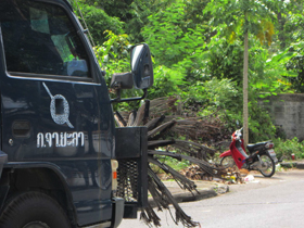 2 ชุดเก็บกู้วัตถุระเบิดใช้รถกวาดตะปูเรือใบเคลียร์พื้นที่ ก่อนส่งเจ้าหน้าที่เข้าตรวจสอบรถจักรยานยนต์สีแดงต้องสงสัยที่จอดทิ้งไว้ไม่ห่างจากทางเข้างานกาชาดยะลา (ภาพทั้งหมดโดย อะหมัด รามันห์สิริวงศ์)