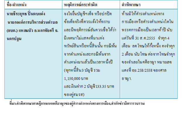 ศาลจำคุก 2 เดือน นายก อบต.ใน จ.นครปฐม ยื่นบัญชีฯเท็จ ซุกหนี้สินเมีย 1.1 ล.