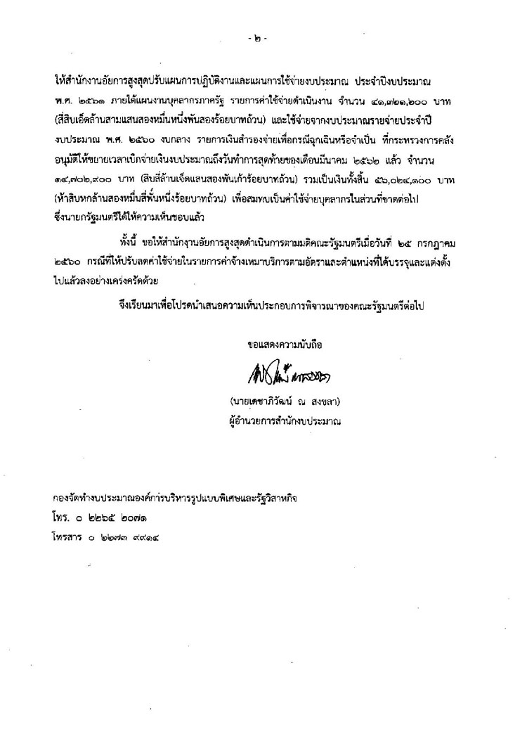 สำนักงบประมาณ เสนอความเห็นอีกว่า ขอให้สำนักงาน อสส. ดำเนินการตามมติคณะรัฐมนตรีเมื่อปี 2560 กรณีให้ปรับลดค่าใช้จ่ายในรายการค่าจ้างเหมาบริการตามอัตรา และตำแหน่งที่ได้บรรจุและแต่งตั้งไปแล้วลงอย่างเคร่งครัดด้วย (ดูเอกสารประกอบ)