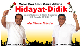 3 โปสเตอร์หาเสียงผู้ว่าการและรองผู้ว่าการนครจาการ์ตา ดร.ฮีดายัต-ศ.ดร.ดีดิก