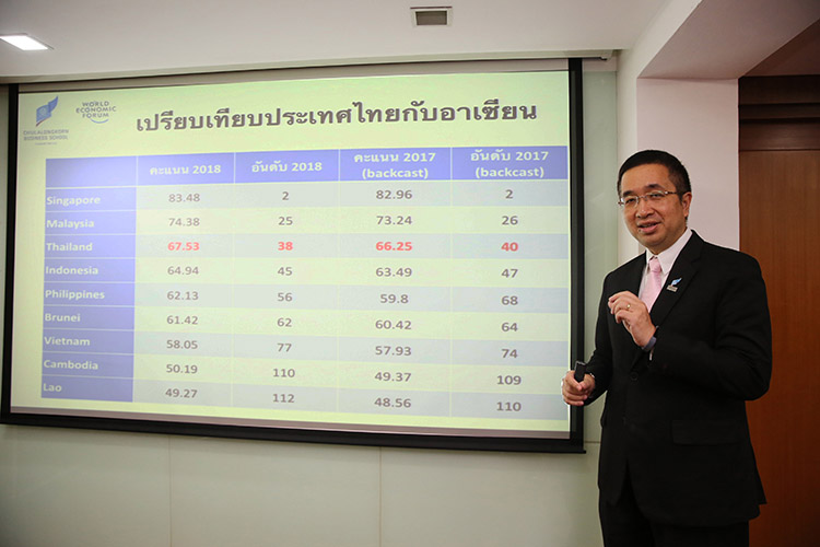 รองศาสตราจารย์ ดร.พสุ เดชะรินทร์ คณบดี คณะพาณิชยศาสตร์และการบัญชี จุฬาลงกรณ์มหาวิทยาลัย ซึ่งเป็นพันธมิตรอย่างเป็นทางการของ WEF (World Economic Forum) ในประเทศไทย เผยว่า ทางคณะฯ เป็นผู้ทำการเก็บข้อมูลเชิงลึก จากแบบสอบถามกับผู้บริหารระดับสูง ขององค์กรขนาดใหญ่และขนาดย่อม ในทุกภาคส่วนอุตสาหกรรม ตามเกณฑ์ที่กำหนด โดย WEF นำไปคำนวณดัชนีความสามารถทางการแข่งขันระดับโลก โดยมีตัวชี้วัด 98 ตัว จัดแบ่งเป็น 12 ด้าน ที่สะท้อนภาพความสามารถในการแข่งขันโดยรวมของประเทศด้วยเกณฑ์และวิธีในการคำนวณใหม่ของ WEF ที่ได้ออกแบบให้สะท้อนภาพของการปฏิวัติอุตสาหกรรม 4.0 มากขึ้น ประเทศไทยอยู่ในอันดับที่ 38 ด้วยคะแนน 67.5 ซึ่งนับว่าดีขึ้นอย่างเห็นได้ชัดจากปีที่ผ่านมา (โดย WEF ได้นำเกณฑ์และวิธีการคำนวณตามแนวทาง GCI 4.0 ไปใช้กับข้อมูลของปี 2017) ซึ่งอยู่ในอันดับที่ 40 และมีคะแนน 66.3 แสดงให้เห็นว่าเมื่อพิจารณาจากเกณฑ์และวิธีการคำนวณโดยใช้เกณฑ์ 4.0 แล้ว ประเทศไทยได้ก้าวสู่ความเป็น 4.0 มากขึ้น