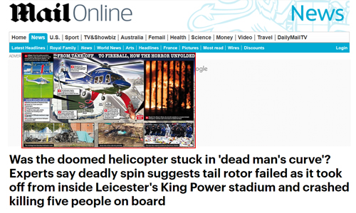 นาย Harry ยังระบุด้วยว่า "ถ้าหากเฮลิคอปเตอร์หมุนอย่างไร้ทิศทาง ก็เป็นไปได้ว่าส่วนของใบพัดหลังนั้นไม่สามารถใช้งานได้โดยสิ้นเชิง ทำให้ตัวเฮลิคอปเตอร์อยู่ในวงโค้งมรณะ (Dead Man's Curve) ที่ยากจะหนีออกมาได้ โดยในขณะนั้นเฮลิคอปเตอร์อยู่ในตำแหน่งที่ต่ำเกินไป และยังมีความเร็วที่น้อยเกินกว่าที่จะทำการปิดเครื่องยนต์เพื่อร่อนลงจอดฉุกเฉิน ซึ่งเหตุการณ์ดังกล่าวเป็นสิ่งที่นักบินเฮลิคอปเตอร์ทุกคนจะถูกฝึกมาว่า ถ้าหากเกิดเหตุใบพัดหมุนโดยควบคุมไม่ได้ นักบินจะต้องปิดเครื่องยนต์ เพื่อทำให้เครื่องหยุดหมุน เพื่อจะอาศัยลมที่พัดผ่านใบพัด ทำให้ตัวเครื่องเฮลิคอปเตอร์สามารถร่อนลงสู่พื้นได้อย่างปลอดภัย"