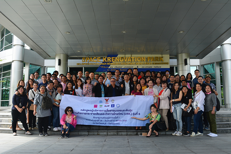 นายชวรงค์ ลิมป์ปัทมปาณี ผู้อำนวยการหลักสูตร นำคณะผู้เข้ารับการอบรมหลักสูตรผู้บริหารการสื่อสารมวลชนระดับสูงด้านกิจการกระจายเสียงและกิจการโทรทัศน์ (บสส.) รุ่นที่ 8 เข้าเยี่ยมชมพร้อมรับฟังสรุปการดำเนินงานของสถานีควบคุมและรับสัญญาณดาวเทียมไทยโชต อำเภอศรีราชา จังหวัดชลบุรี (Gistda) ในโอกาสศึกษาดูงานส่วนภูมิภาคครั้งที่ 1 จังหวัดชลบุรี และ จังหวัดระยอง ทั้งนี้มี นายสาคร ชนะไพฑูรย์ ที่ปรึกษาด้านการบริหารภาพลักษณ์และประชาสัมพันธ์ โครงการระบบดาวเทียมสำรวจเพื่อการพัฒนา และ นายบุญชุบ บุ้งทอง ผู้อำนวยการสำนักปฏิบัติการดาวเทียม ให้การต้อนรับ เมื่อวันเสาร์ที่ 27 ตุลาคม 2561