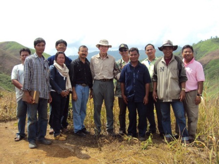 เมื่อเร็วๆนี้ นายธนกร รัชตานนท์(ที่ 7 จากขวา) ผู้จัดการโครงการปิดทองหลังพระฯ จ.น่าน และนายสุเจตน์ มงคลไชยสิทธิ์ (ที่ 5 จากขวา) หัวหน้าโครงการพัฒนาเพื่อความมั่นคงพื้นที่ลุ่มน้ำน่านอันเนื่องมาจากพระราชดำริ พื้นที่ 2 (พมพ.2) พร้อมด้วยชาวบ้านแม่สะนาน นำคณะของ นายวุฒิชัย สิทธิปรีดานันท์ (กลาง) รองกรรมการผู้จัดการอาวุโส บริษัท เจริญโภคภัณฑ์อาหาร จำกัด (มหาชน) หรือ ซีพีเอฟ และ นายจงกล เหลืองอ่อน (ที่ 8 จากขวา) รองกรรมการผู้จัดการ กลุ่มธุรกิจพืชไร่ (ข้าวโพด) เครือเจริญโภคภัณฑ์ สำรวจภูเขาและป่าต้นน้ำว้า ที่จะร่วมกันฟื้นฟูและพัฒนาพื้นที่นี้ เป็นพื้นที่นำร่องใน “โครงการธรรมชาติปลอดภัย (น่านเขียว)” เพื่อลดการบุกรุกเผาป่า และอนุรักษ์สิ่งแวดล้อม ตลอดจน รักษาผืนป่าต้นน้ำว้า ซึ่งเป็นต้นสายของแม่น้ำน่านอย่างยั่งยืนตลอดไป ณ หมู่บ้านราษฎร์รัฐพัฒนา ต.พงษ์ อ.สันติสุข จ.น่าน