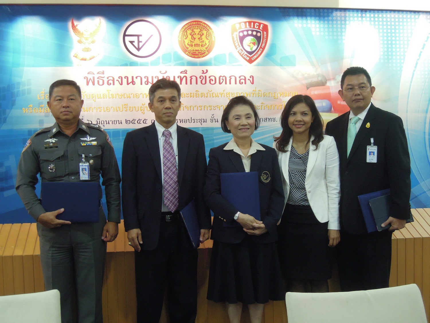 วันพุธที่ 6 มิ.ย. ที่ผ่านมา ณ อาคารหอประชุม ชั้น 1 นายประเสริฐ อภิปุญญา รองเลขาธิการกสทช. เภสัชกรหญิงศรีนวล กรกชกร รองเลขาธิการ อย. นายนพปฏล เมฆเมฆา รองเลขาธิการ สคบ. พลตำรวจตรีนิพนธ์ เจริญผล ผู้บังคับการ กองบังคับการปราบปรามการกระทำความผิดเกี่ยวกับการคุ้มครองผู้บริโภค ร่วมลงนามบันทึกข้อตกลง เรื่อง การกำกับดูแลโฆษณาอาหาร ยา และผลิตภัณฑ์สุขภาพที่ผิดกฎหมายหรือมีลักษณะเป็นการเอาเปรียบผู้บริโภค ในกิจการกระจายเสียงและกิจการโทรทัศน์ โดยมี พันเอกนที ศุกลรัตน์ พันตำรวจเอกทวีศักดิ์ งามสง่า ผศ.ธวัชชัย จิตรภาษ์นันท์ นางสาวสุภิญญา กลางณรงค์ นายประวิทย์ ลี่สถาพรวงศา คณะกรรมการกิจการกระจายเสียง กิจการโทรทัศน์ และกิจการโทรคมนาคมแห่งชาติ(กสทช.) เครือข่ายแผนงานพัฒนากลไกเฝ้าระวังระบบยา(กพย.) สำนักงานคณะกรรมการสุขภาพแห่งชาติ(สช.) และสื่อมวลชน ร่วมเป็นสักขีพยานในพิธีลงนามสำคัญครั้งนี้ โดยสาระสำคัญของบันทึกข้อตกลงคือ ความร่วมมือที่จะบูรณาการงานคุ้มครองผู้บริโภคเกี่ยวกับการโฆษณาอาหาร ยา และผลิตภัณฑ์สุขภาพที่ผิดกฎหมายหรือมีลักษณะเป็นการเอาเปรียบผู้บริโภคในกิจการกระจายเสียงและกิจการโทรทัศน์ ทั้งในด้านแลกเปลี่ยน แบ่งปันความรู้ ข้อมูลข่าวสาร ฐานข้อมูล และความคิดเห็นระหว่างหน่วยงานให้เกิดความคล่องตัวและรวดเร็วมากยิ่งขึ้น รวมทั้งส่งเสริมและสนับสนุนการเผยแพร่ข้อมูลข่าวสาร และประชาสัมพันธ์ความรู้ด้านต่าง ๆ และการบังคับใช้กฎหมายเพื่อคุ้มครองผู้บริโภคอย่างมีประสิทธิภาพ เพื่อหยุดยั้งการโฆษณาที่ผิดกฎหมายหรือมีลักษณะเป็นการเอาเปรียบผู้บริโภค