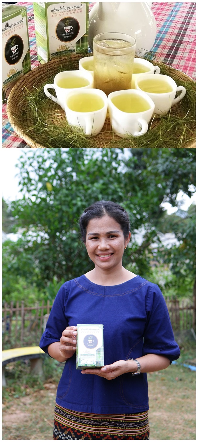 ผลิตภัณฑ์ชาใบข้าวหอมมะลิ วิสาหกิจชุมชนส่งเสริมอาชีพบ้านเหม้า อำเภอสุวรรณภูมิ จังหวัดร้อยเอ็ด