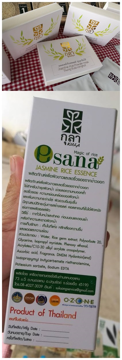 ผลิตภัณฑ์เวชสำอาง จากข้าวหอมมะลิ และผงพอกหน้าข้าวหอมมะลิ จากวิสาหกิจชุมชนเกษตรยั่งยืน ต.หนองแคน