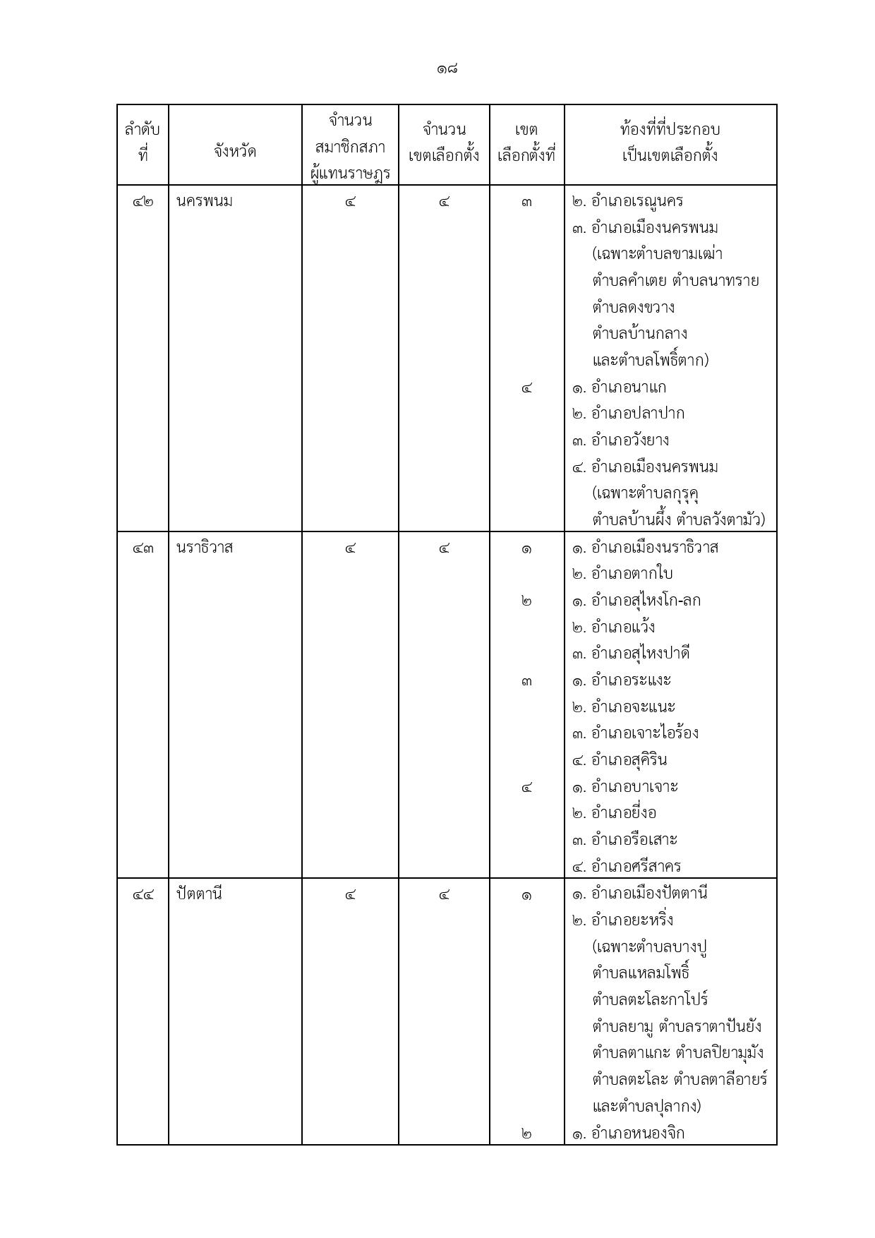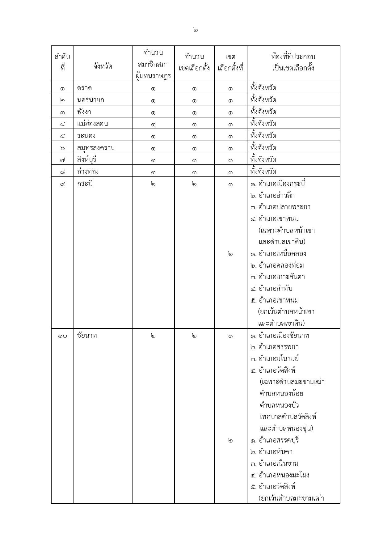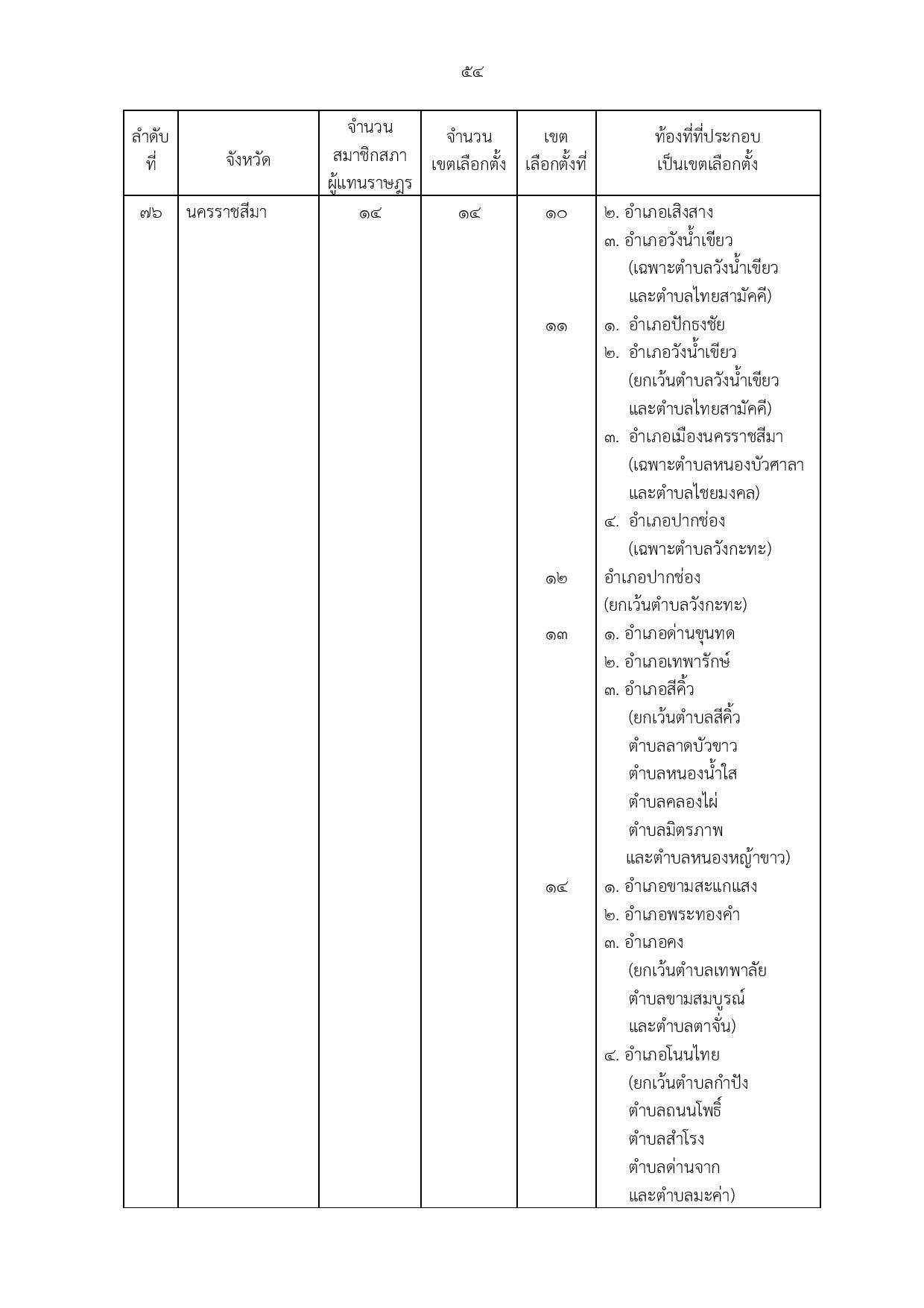 หมายเหตุ สำนักข่าวอิศรา www.isranews.org :เมื่อช่วงดึกคืนวันที่ 28 พ.ย. 2561 ที่ผ่านมา คณะกรรมการการเลือกตั้ง (กกต.) ออกประกาศการแบ่งเขตเลือกตั้งสมาชิกสภาผู้แทนราษฎร (ส.ส.) แบบแบ่งเขตเลือกตั้ง รวม 77 จังหวัด มีจำนวน ส.ส. เขตตั้งแต่ 1-10 คน โดยจังหวัดใหญ่ ๆ ได้แก่ กทม. 30 เขต นครราชสีมา 14 เขต อุบลราชธานี 10 เขต ขอนแก่น 10 เขต เชียงใหม่ 9 เขต อุดรธานี 8 เขต สงขลา 8 เขต บุรีรัมย์ 8 เขต ชลบุรี 8 เขต สมุทรปราการ 7 เขต เป็นต้น (อ่านประกอบ : แพร่ประกาศ กกต. กำหนดแบ่ง 350 เขตเลือกตั้งส.ส. 77 จังหวัด)