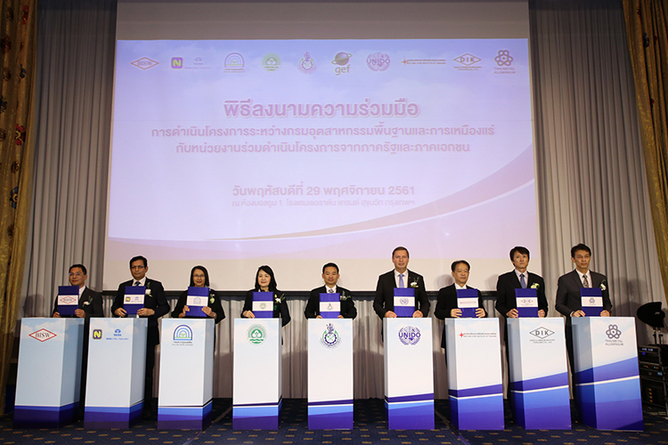 กรมอุตสาหกรรมพื้นฐานและการเหมืองแร่ (กพร.) กระทรวงอุตสาหกรรม ร่วมกับองค์การพัฒนาอุตสาหกรรมแห่งสหประชาชาติ (UNIDO) จัดพิธีเปิดโครงการ นำร่องรีไซเคิลเศษโลหะอย่างเป็นมิตรกับสิ่งแวดล้อม และพิธีลงนามความร่วมมือกับภาครัฐและเอกชน จำนวน 7 ราย เพื่อพัฒนาอุตสาหกรรมรีไซเคิลเศษโลหะที่มีประสิทธิภาพและเป็นมิตรกับสิ่งแวดล้อม ภายใต้กองทุนสิ่งแวดล้อมโลก กว่า 1,250 ล้านบาท