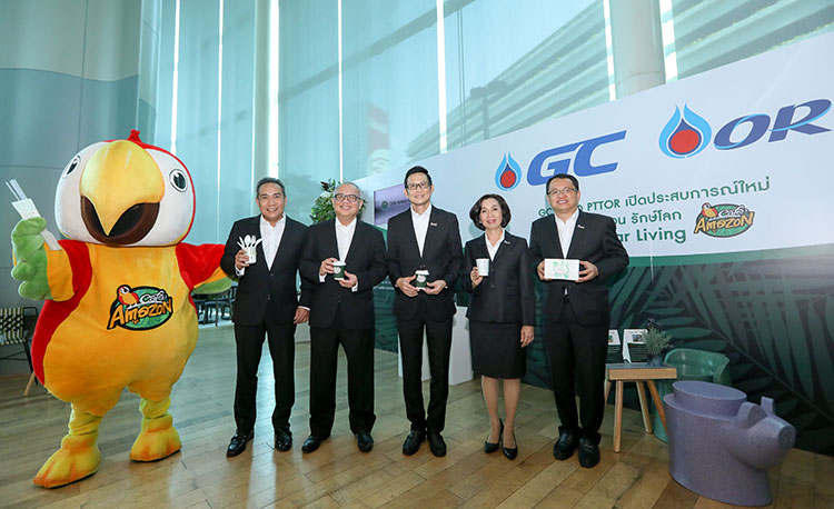 นายอรรถพล ฤกษ์พิบูลย์ ประธานกรรมการบริษัท ปตท. น้ำมันและการค้าปลีก จำกัด (มหาชน) หรือ PTTOR พร้อมด้วย นางสาวจิราพร ขาวสวัสดิ์ ประธานเจ้าหน้าที่บริหารและกรรมการผู้จัดการใหญ่ PTTOR ร่วมกับ นายสุพัฒนพงษ์ พันธ์มีเชาว์ ประธานเจ้าหน้าที่บริหารและกรรมการผู้จัดการใหญ่ บริษัท พีทีที โกลบอล เคมิคอล จำกัด (มหาชน) หรือ GC พร้อมด้วยผู้บริหารของทั้งสองบริษัท ร่วมสร้างประสบการณ์ใหม่ในร้านคาเฟ่ อเมซอน โดยออกแบบตกแต่งร้านสาขาต้นแบบ ภายใต้แนวความคิด Circular Living ซึ่งใช้ทรัพยากรตามหลัก 3Rs ได้แก่ Reduce Reuse Recycle และมุ่งสู่การขับเคลื่อน 5Rs โดยเพิ่ม Refuse และ Renewable โดยการนำวัสดุเหลือใช้จากร้านกาแฟ ขยะพลาสติก มาแปรรูปและสร้างมูลค่าเพิ่มเป็นของใช้และของตกแต่งในร้านคาเฟ่ อเมซอน เพื่อให้ลูกค้าได้ตระหนักรู้และได้รับประสบการณ์ตรงจากการใช้งานจริง อีกทั้ง ยังมีนำพลาสติกชีวภาพ (Bio Plastic) ที่ผลิตจากพืชและย่อยสลายได้ตามธรรมชาติมาใช้เป็นบรรจุภัณฑ์ภายในร้าน เพื่อตอกย้ำการสร้างการรับรู้เกี่ยวกับพลาสติกทางเลือกและร่วมลดปัญหาขยะพลาสติกในประเทศอีกด้วย