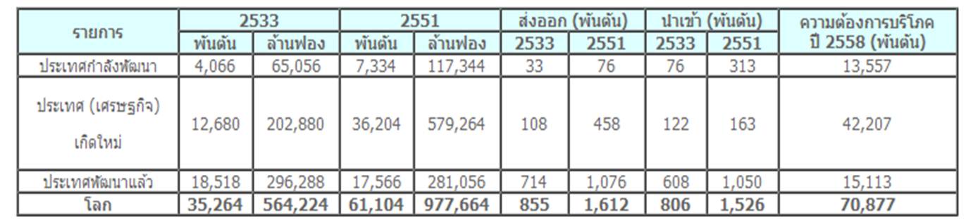 ตารางที่ 1 สถิติการผลิต ส่งออก และนำเข้าไข่ไก่ในกลุ่มประเทศต่างๆ