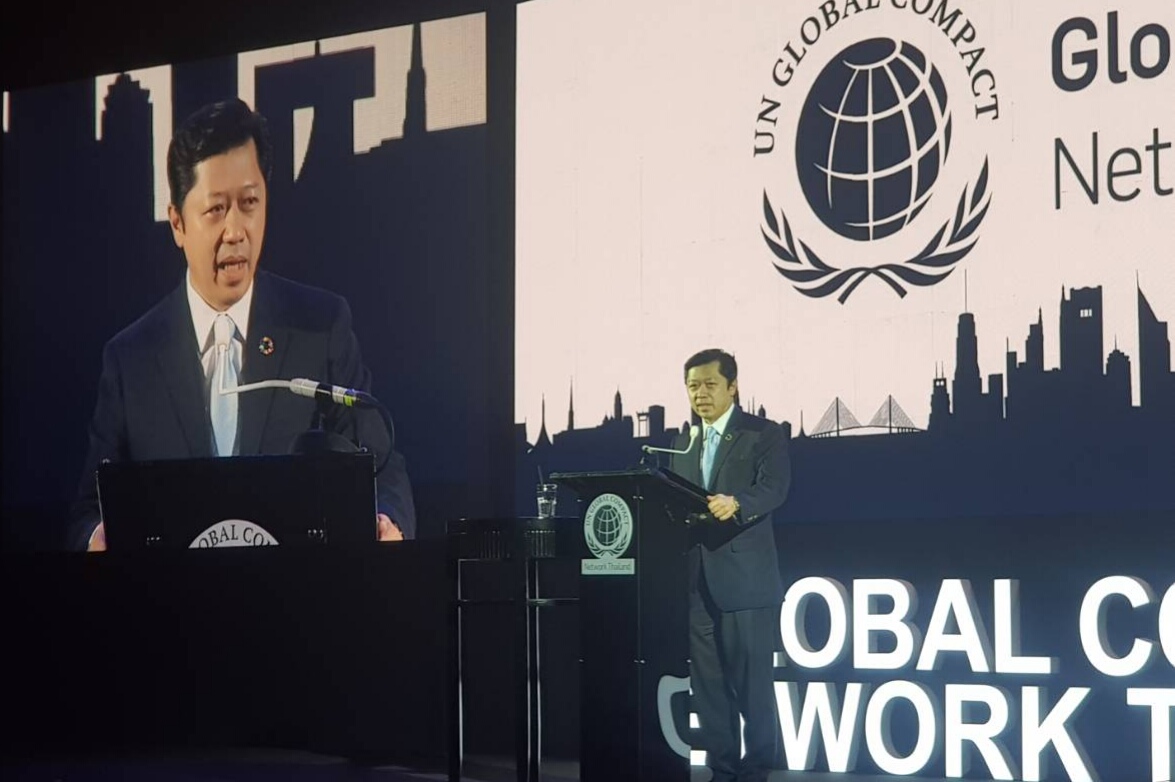 ด้านนายศุภชัย เจียรวนนท์ นายกสมาคมเครือข่ายโกลบอลคอมแพ็กแห่งประเทศไทย กล่าวถึงปัญหาเศรษฐกิจ สังคม สิ่งแวดล้อมของโลกและประเทศไทยไม่ได้แตกต่างกัน ซึ่งที่ผ่านมา ภาคเอกชนเข้าไปมีส่วนร่วมในการแก้ไขปัญหาค่อนข้างน้อย เรียกว่า ต่างคนต่างทำ และแปลการพัฒนาที่ยั่งยืนแตกต่างกัน