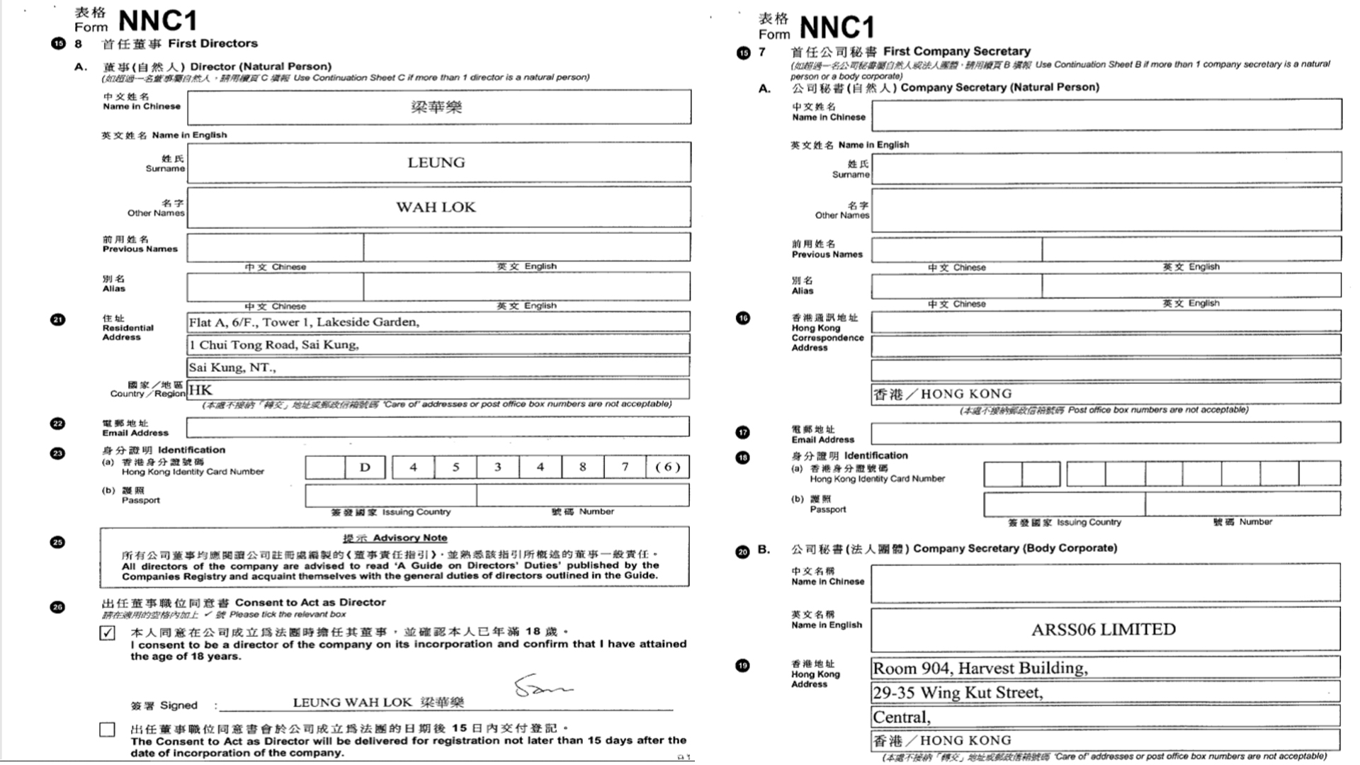 มีนาย Luang Wah Long สัญชาติฮ่องกงทำหน้าที่เป็นผู้อำนวยการบริษัท และมีบริษัท ARSD6 Limited ทำหน้าที่เป็นเลขานุการของบริษัท (ดูเอกสารประกอบ)